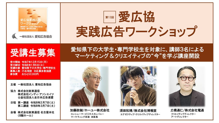 2025.12.15 ~ 2026.1.6「第13回愛広協実践広告ワークショップ」受講学生募集